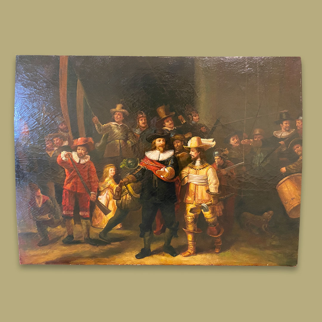 Ölgemälde Kopie nach Rembrandt Harmenszoon van Rijn (1606-1669) „Die Nachtwache“, Öl auf Holz,  90 x 120 cm